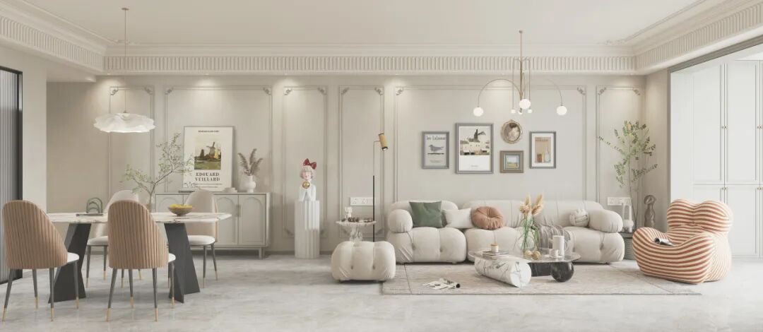 核心要素包括:用低飽和的奶油色系(米白、奶咖、淺杏等)打底,加入優雅的石膏線、浪漫的拱形門洞(氛圍感拉滿),再配上溫潤的材質和恰到好處的光影,構建出兼具優雅與溫度的生活空間。