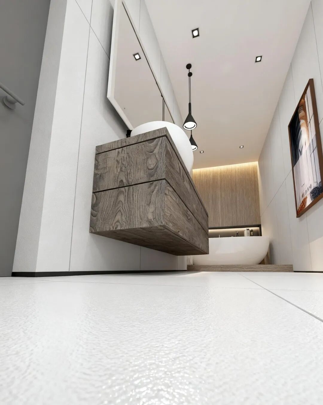東方白灰展現奶油灰底+超細紋理如“加了水墨的奶油”,高級又不沉悶。浴缸邊一躺,配個香薰蠟燭,恍如置身巴黎民宿~ 干粒磚面抗污防滑,泡澡的安全感拉滿。
